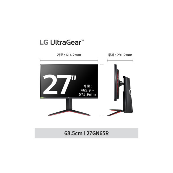 • LG 게이밍모니터 27GN65R IPS 144Hz 1ms 울트라기어 지싱크 HDR 피벗