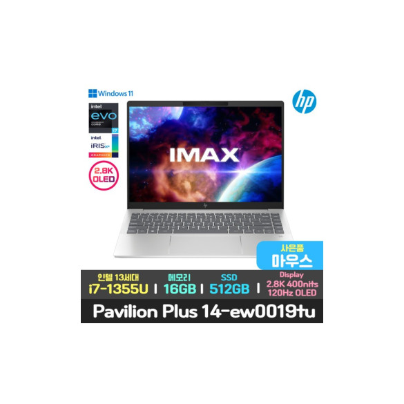 • 플러스 14-ew0019TU 노트북 마우스/13세대 i7/2.8K/OLED/120Hz/16GB/윈11/고해상도 프리미엄 사무용