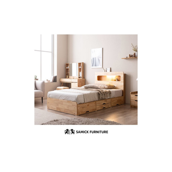 • 수납침대 신혼 그레이 화이트 LED 조명 오피스텔 이사 연수원 편안한 심플 자취