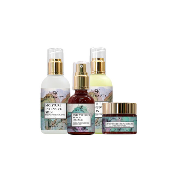 • 주름개선 탄력 보습 4종세트 (탄력에센스 탄력크림 보습스킨 보습로션) 탄력저하 건조피부를위한 세트구성