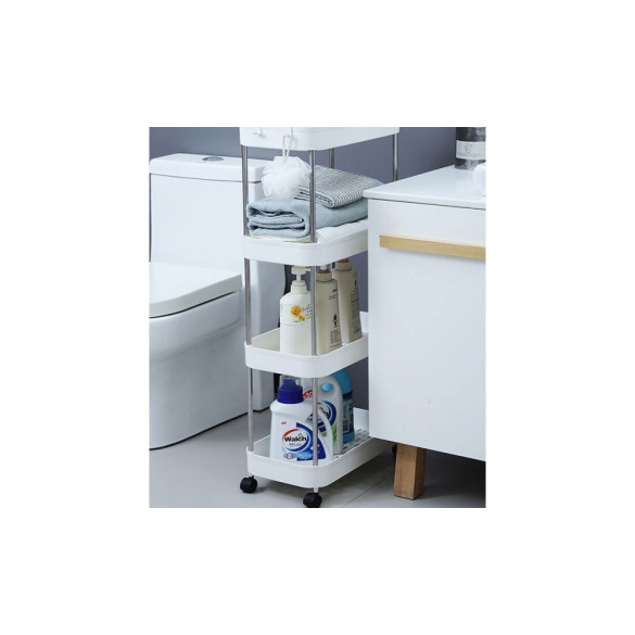 • 와이드형 바퀴 수납장 틈새 공략 이동식 트롤리 정리함 간이 후크 욕실 주방 가정(3단/4단)